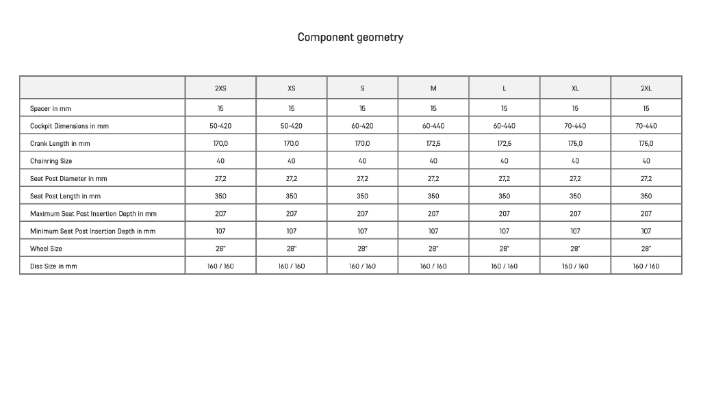 - Updated to standard steerer tube and seatpost specs