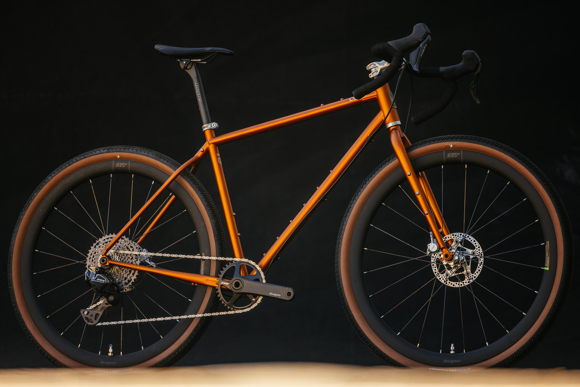 - Custom blended tubeset with Reynolds 853 front triangle, custom drawn head tube, Columbus chainstays, and custom made T45 seatstays.