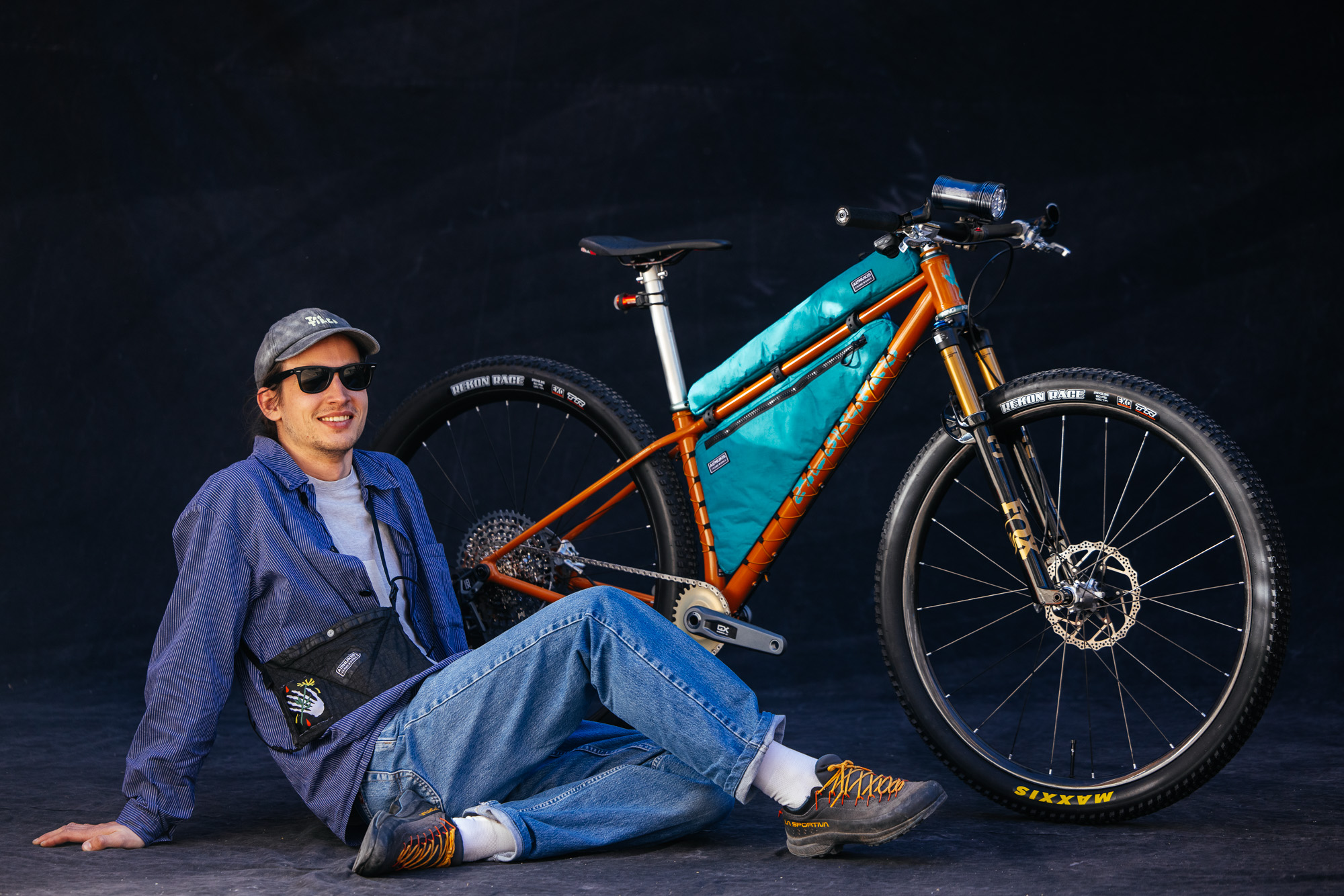 Catching up with Johannes, he broke down the use case for the ERT. Designed with the input from three of his customers and athletes, the ERT is designed for long ultra racing. Crafted for the Alps and beyond, it rolls on 29er wheels with a 100 mm suspension fork. The frame was designed with a high stack height, making it comfortable for the long haul.