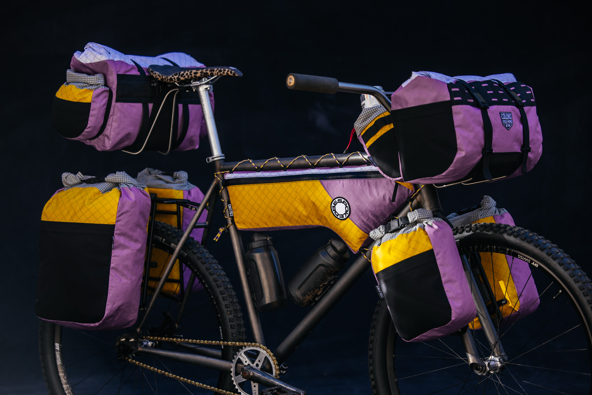 Staffordshire, England-based Collins Cycle Works is the passion project of Patch Collins. Inside his shop, he makes custom bags for clients looking for a mix of classic touring and modern bikepacking racing bags. When he was preparing for the 2026 Bespoked UK handmade show in London this year, he wanted to bring a bike to showcase his offerings on, so he made his own.