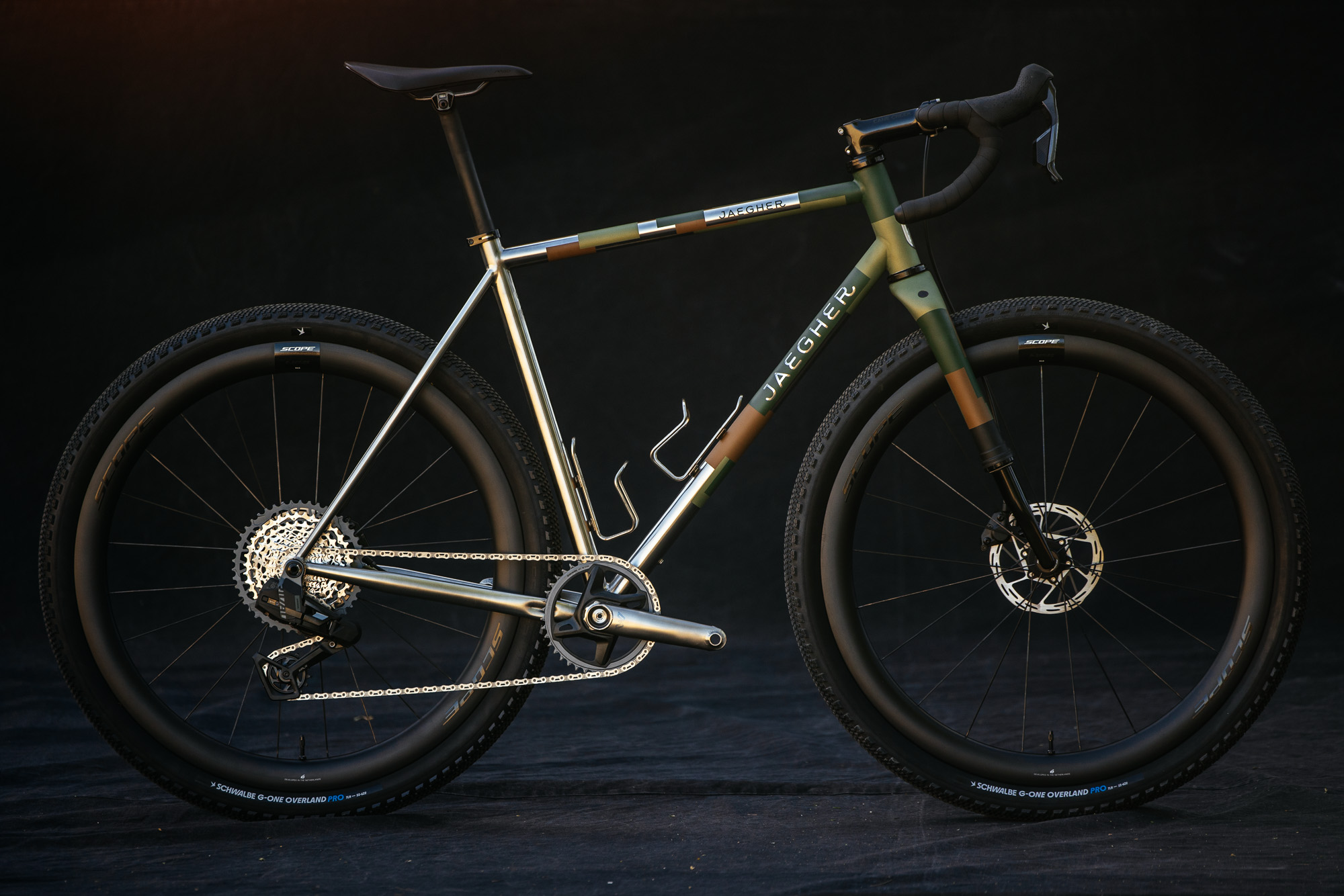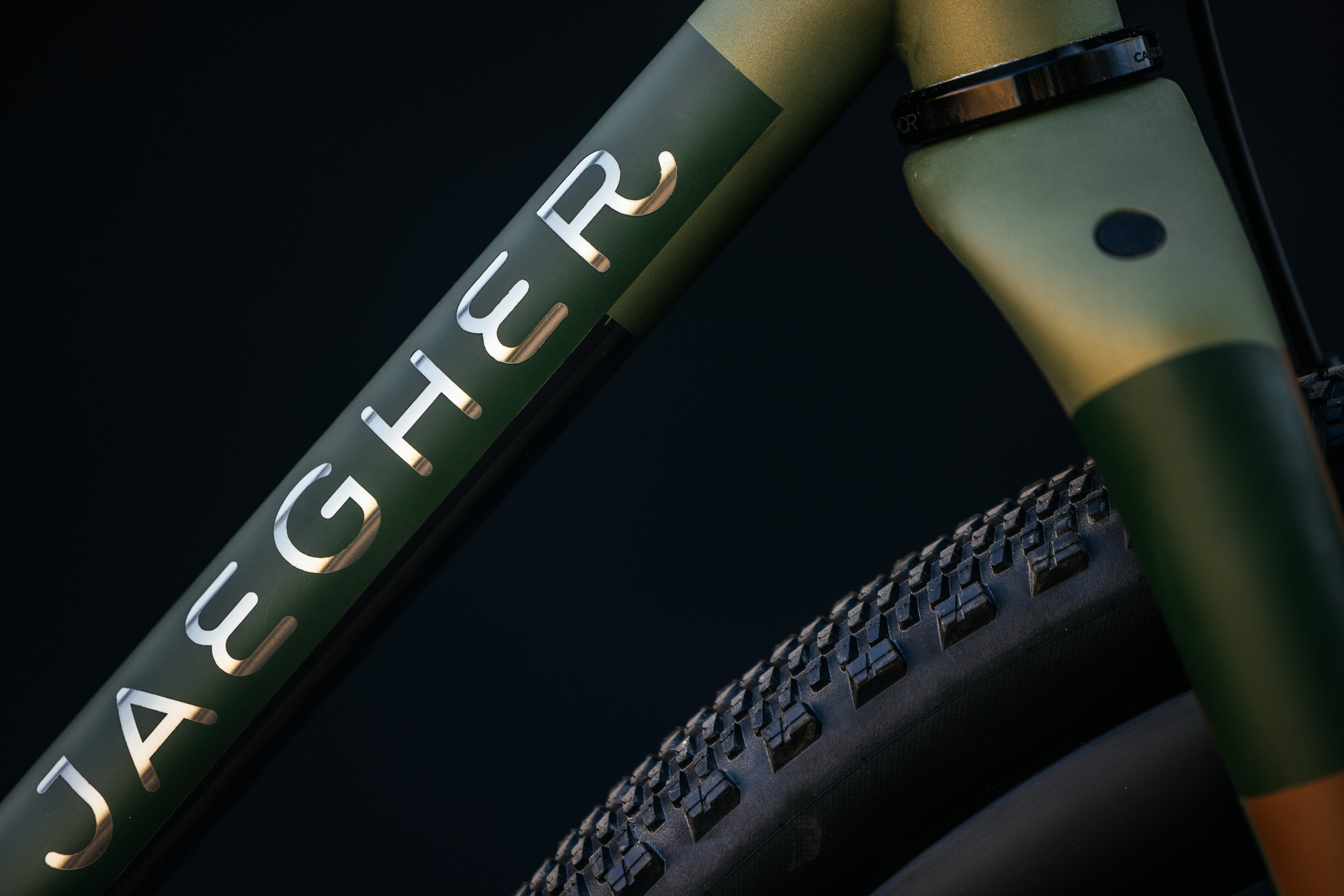 Stainless steel legends Jaegher Cycles made the trip out from Gent, Belgium to display its Typhoon FL.XR adventure gravel bike with a full Cane Creek build kit. Rolling on the Cane Creek Invert fork, the Typhoon can be built to clear a 50 – 55 mm tire.