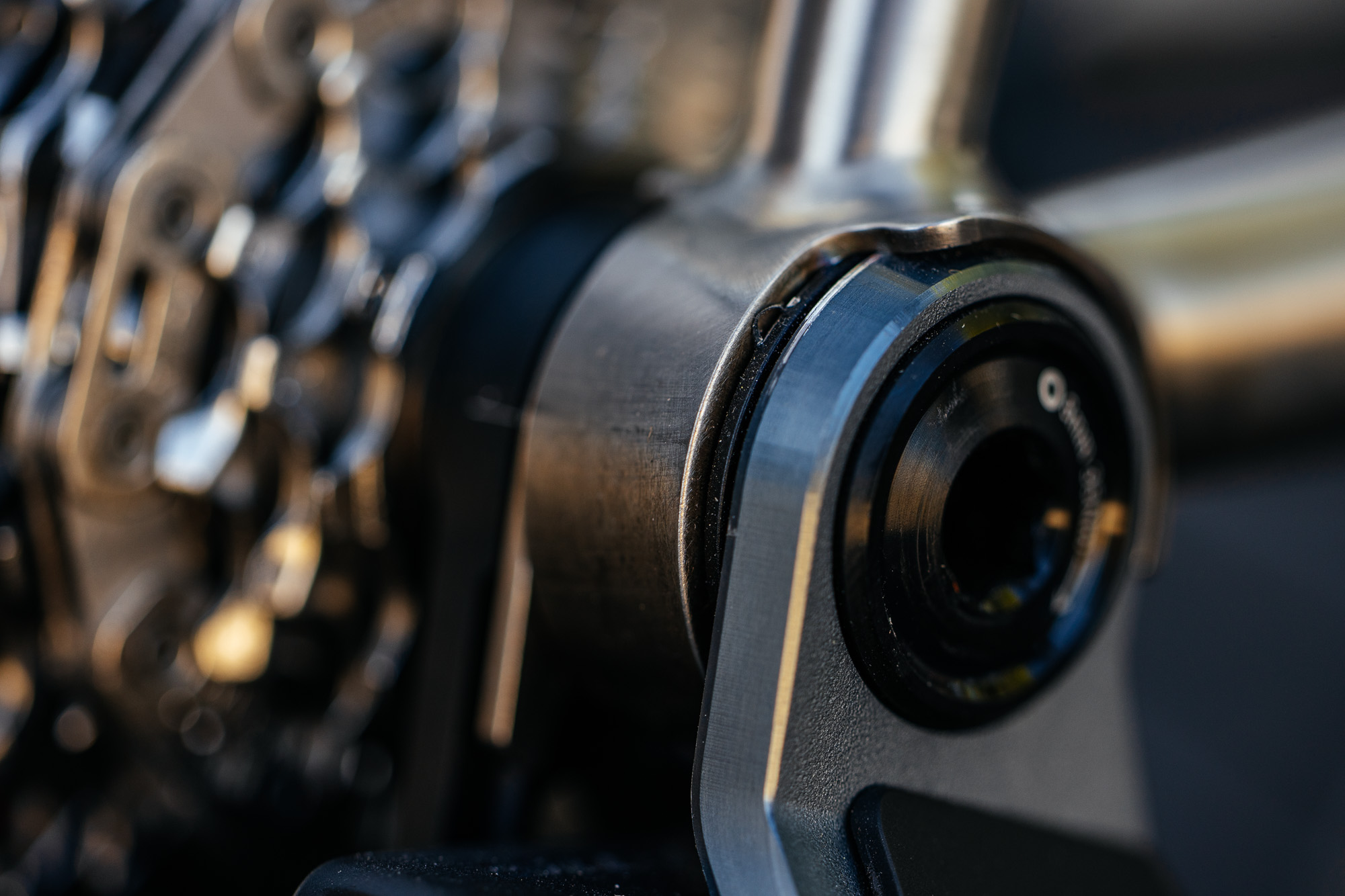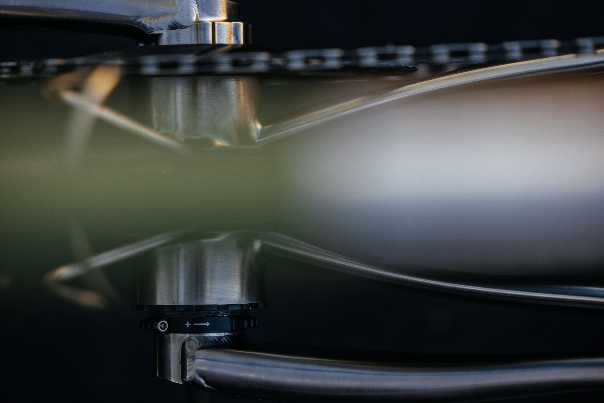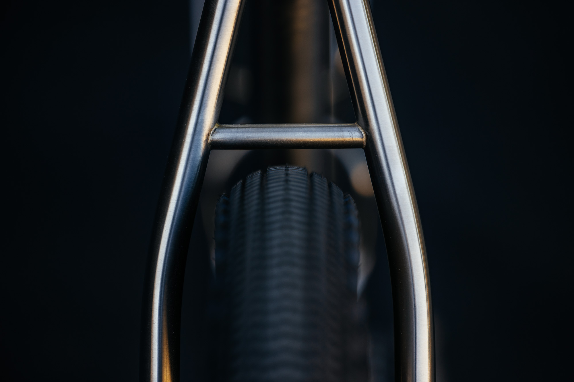 Built from a mix of Dedacciai and 4130 steel, it uses 3D sintered stainless steel components found at the seat cluster, bottom bracket yoke, and dropouts. The drop stem is an ovalized tube, the same diameter as the top tube to bring the visual lines consistently across the front end of the bike.