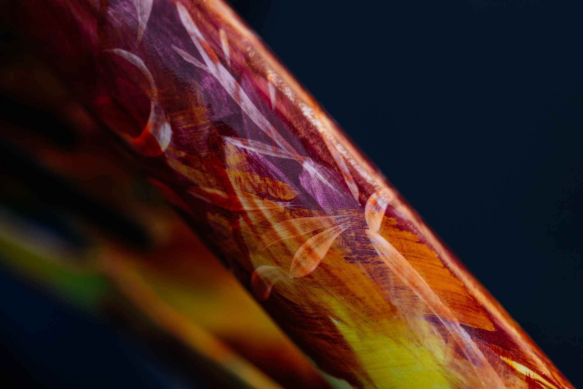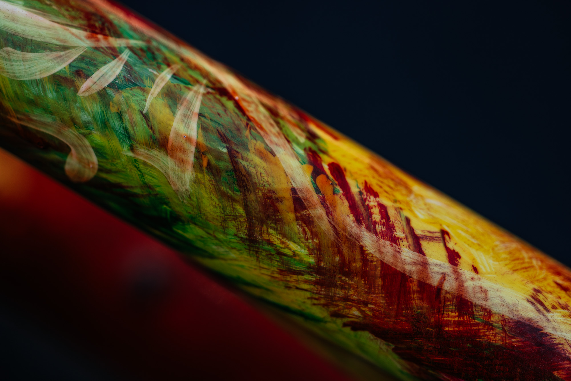 The result is show-stopping beauty. Nothing compares to the truly handmade. Each stroke gives the frame its own unique character. Leaving the rockers silver adds just enough contrast to catch your eye as the brush strokes lead it across the impecably-constructed frame.