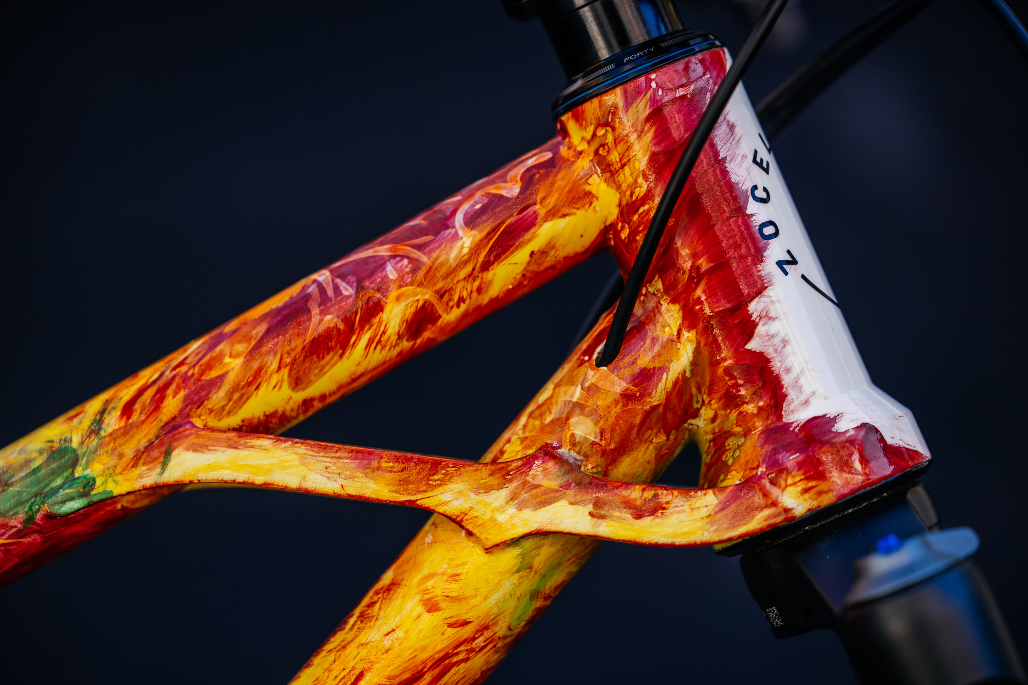 BRNO, Czech Republic-based Zoceli Bikes displayed this show stopping hand-painted shred sled of a Rutina build. Builder Martin Saida’s partner Klara did the paint herself, laying down each brushstroke on the frame.