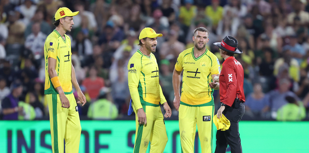 The Super Giants sent Evan Jones and Jos Buttler into bat. After some superb bowling from Gleason, the Super Giants only managed 6 runs from their over. The Super Kings managed to chase these runs down without losing any wickets.