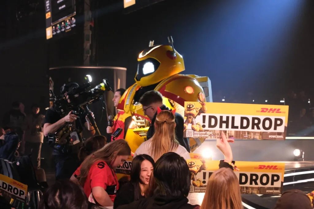 OWCS presented a more polished commercial presence this year, both on-site and in-game. The most noticeable example was DHL’s in-game title-style integration, using in-map billboards directly tied to the broadcast. DHL also provided a robot interaction segment during the mid-show break. This part was fully shown on the international Twitch stream, though not all of it appeared on the Chinese stream.