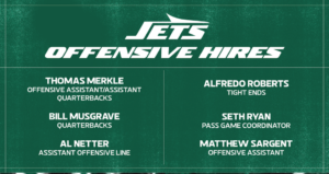 So now the Jets offense goes from a rookie offensive coordinator in Tanner Engstrand, an out-of-place QB coach in Charles London and a rookie tight ends coach who lasted one season, to three established veterans who have had success at multiple stops in multiple roles. This year’s staff compared to last year’s is night and day.