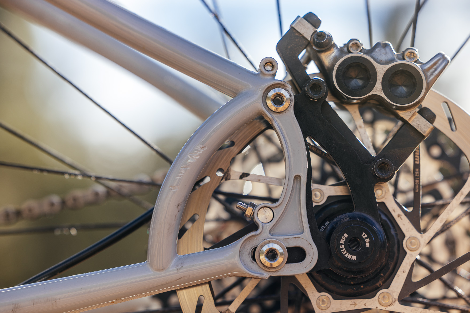 A huge thanks to Todd for being willing to think outside of the box and put together something very different than what he normally does; Mike C for all of the wheel and tire advice; Sincere Cycles for helping me stockpile parts for this project; Santa Fe Mobile Bike Works for the build (done in a van, outside my house!); and of course John for the mind-melting photography!