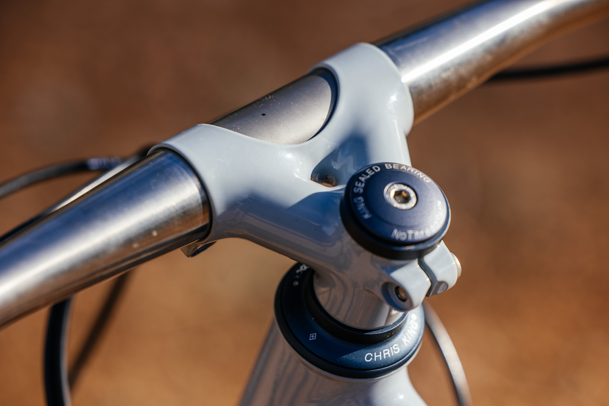 I also opted for Todd’s Swinger dropouts, which, aside from great looks, also allow for adjustment of chainstay length and the ability to tension a chain for singlespeeding. He was one of, if not the first, to use this design, and since then it has often been copied, but his remains one of the classiest. None of his bikes is fully complete without his stunning, color-matched, fillet-brazed mini bullmoose stems, so that was a must as well.