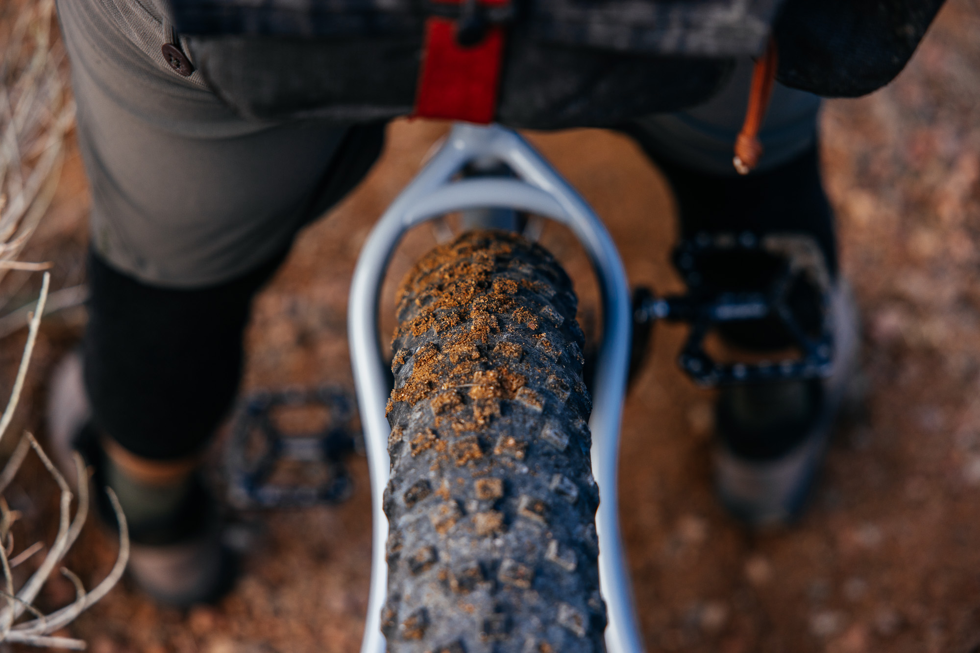 B-Fat is nomenclature for a 27.5” tire whose width falls somewhere between your “typical” mountain bike tire and a full-on fat bike tire: 3.8–4.0”. For me, it strikes a magical balance; you get the height and rollover capabilities of a 29+ tire, way more traction, float, and volume, all without the full weight of a true 4.5–5.0” fat bike tire. What, you might ask, are the compromises? It certainly weighs a bit more than a traditional tire and might be a bit slower (depending on the rider), but to me those are negligible in comparison to its benefits.