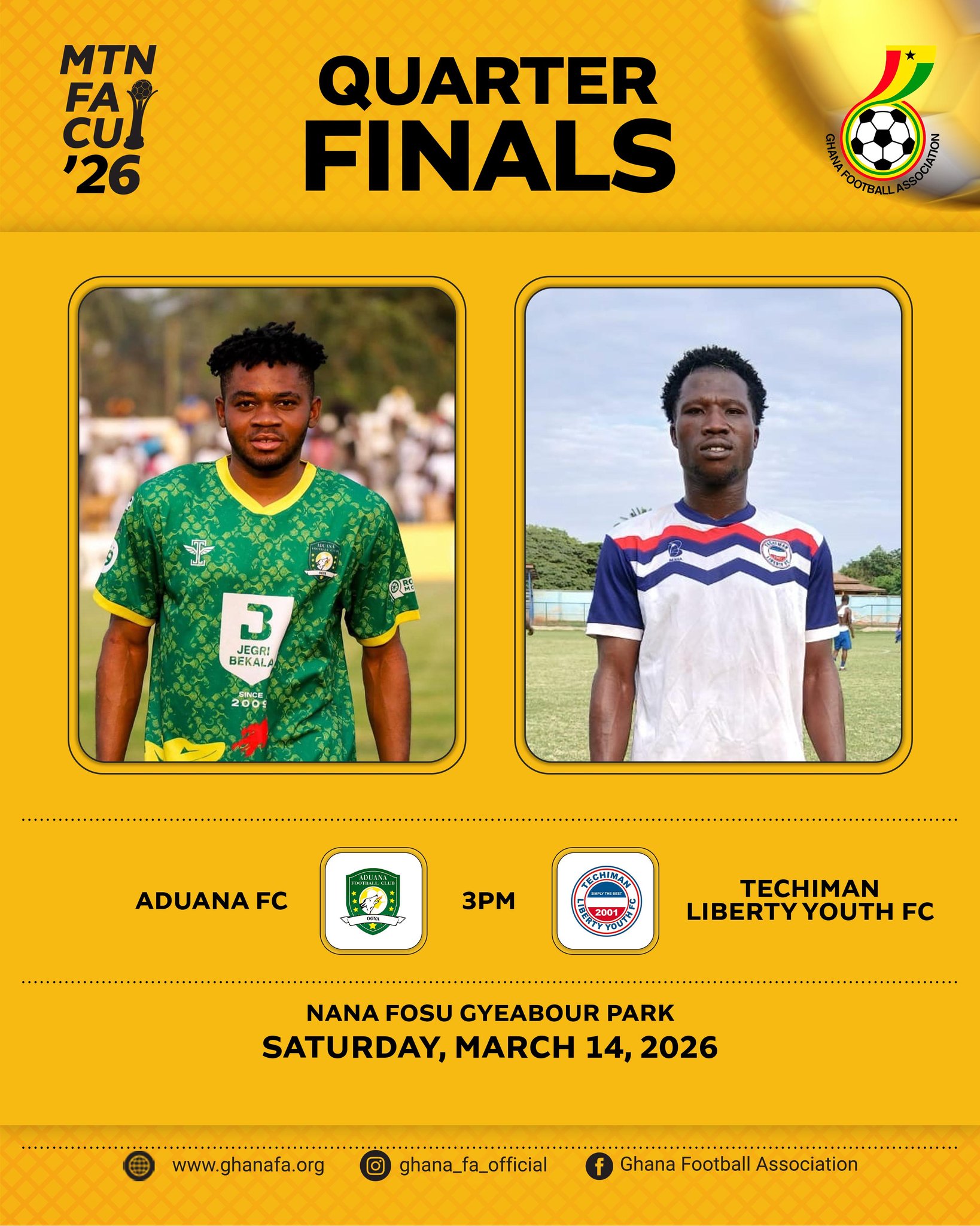 The game will take place at the Nana Fosu Gyeabour Park (Saturday) at 3:00 pm, a neutral ground, where both teams are looking to secure passage to the semi-finals of the competition.