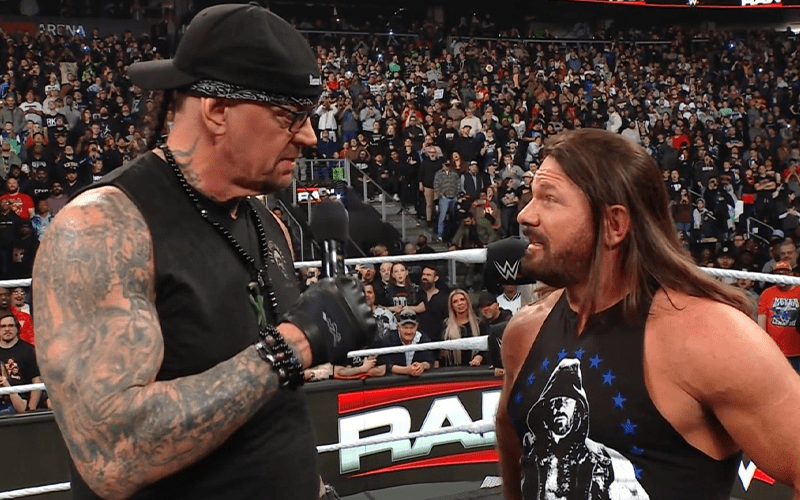 Then The Undertaker’s gong hit and The Phenom came out to pay tribute to Styles. He came out on his motorcyle as Kid Rock played. AJ Styles looked on at Undertaker, who he retired at WrestleMania during the pandemic. The American Badass got in the ring, where he looked down at Styles’ vest and gloves in the ring and looked back at him. He had a microphone in his hand, and he took a minute before asking if Styles was just going to leave his stuff and take off, because “we’ve got unfinished business.”