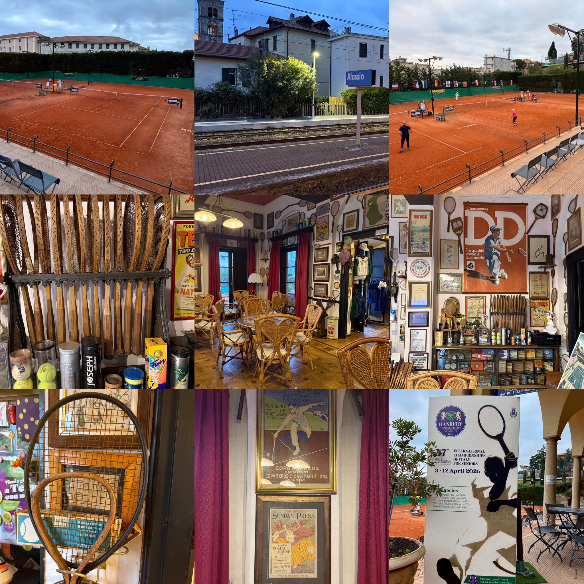 I had a singles match second after 11:30. I arrived around 11:30 at the Hanbury Tennis Club, which has a small clubhouse/restaurant chock full of tennis memorabilia (which extends to the second floor where the small locker rooms are located. The restaurant does a brisk business at least during the tournament, turning out pasta dishes, focaccia and more along with the requisite (to Italians anyway) coffee. It was pretty cold and I had forgotten warm up pants so I went back and picked them up, lucky I am only 8 minutes away (not mostly flat though…down a hill from the Club).
