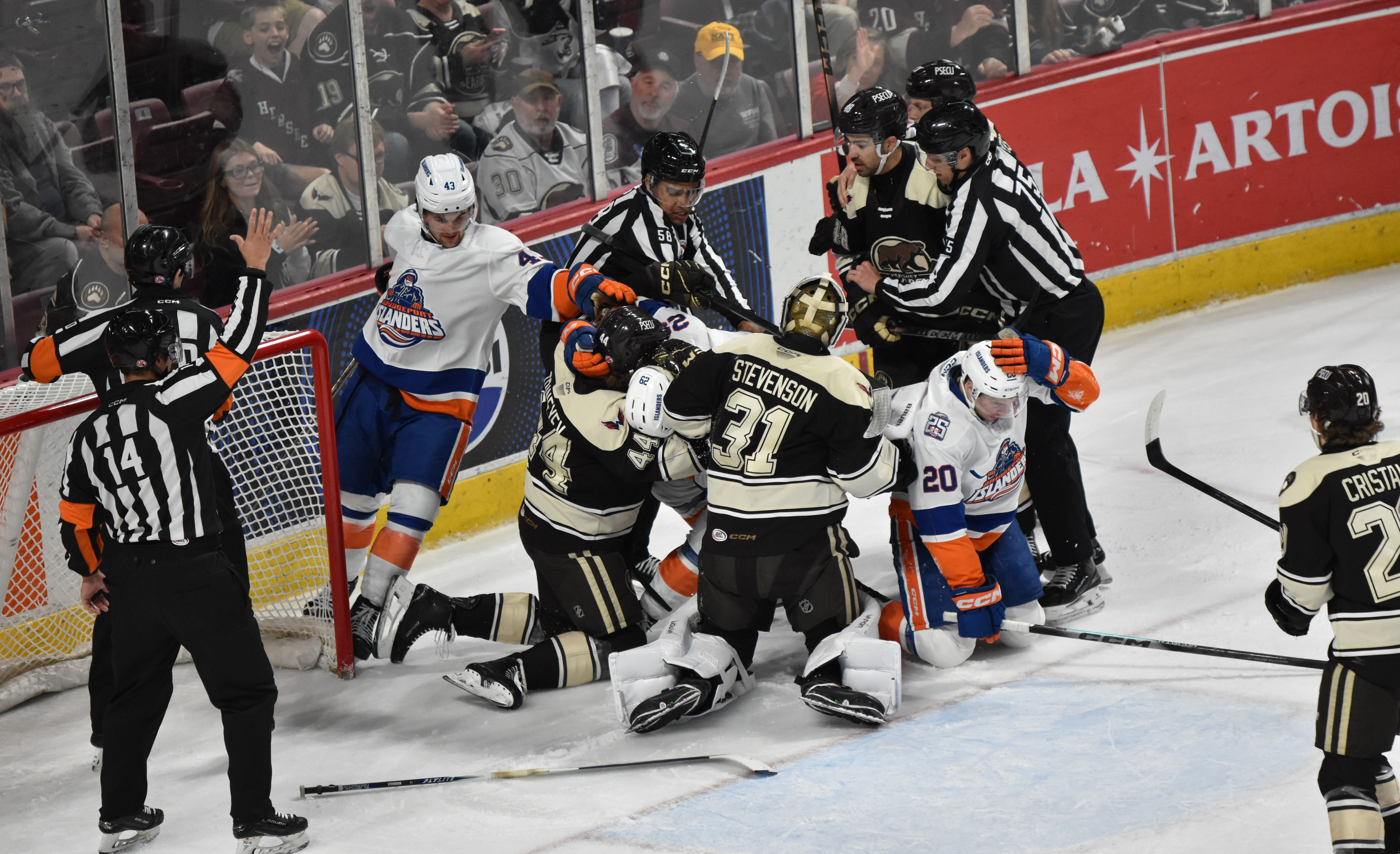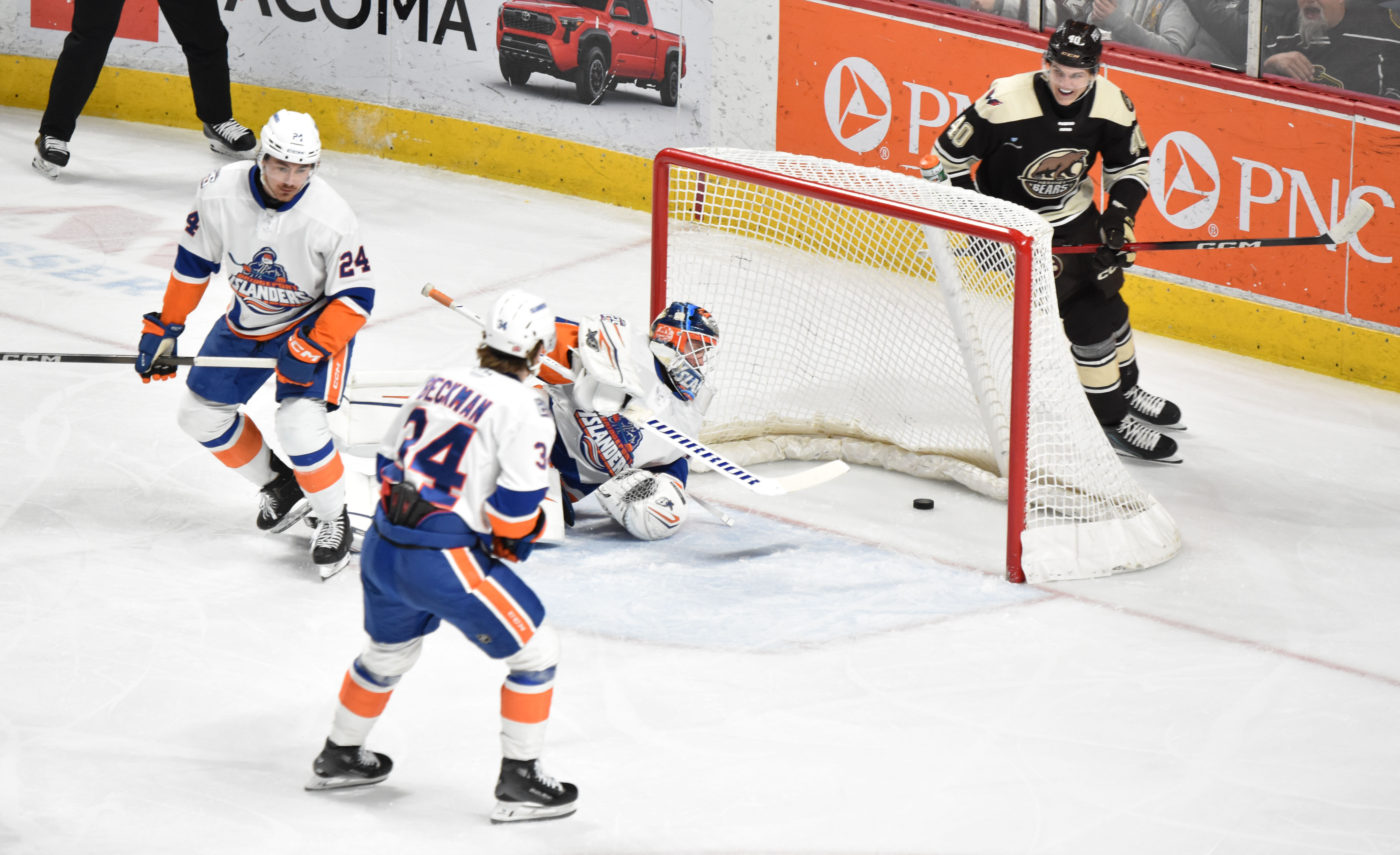 On Thursday, April 23, 2026, in the 1st Round of the Calder Cup Playoffs between the Hershey Bears and Bridgeport Islanders. The Bears won by a score of 5-2