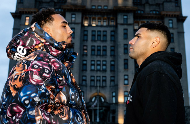 Ben Whittaker face-to-face with Braian Suarez ahead of their clash in Liverpool on Saturday Photo Credit: Matchroom Boxing