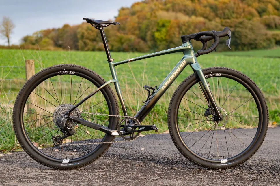 Argon 18 looks to offer an adventure-ready gravel bike that can also handle racing, thanks to aero front-end features. But the aero morphs into a huge down tube with capacious internal storage and impressive stiffness. Coupled with 57mm clearance, kinked seatstays, compatibility with a suspension fork and Argon’s headset system, which puts the spacers below the top bearing, it’s impressively capable on tougher ground. Bash guards and fork mounts add to the ruggedness.