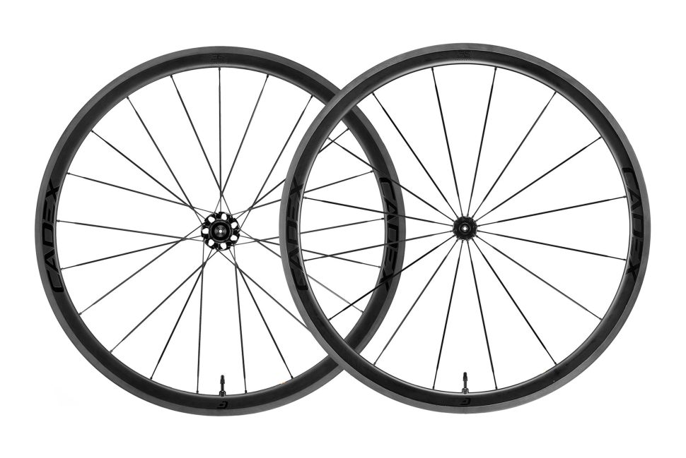 Riders of rim brake bikes don’t have to be left out from the latest wheel tech, with Cadex selling its 36mm deep wheelset in both disc and rim brake versions with aero carbon spokes that ensure a low wheelset weight. It uses Giant’s Dynamic Balanced Lacing system to ensure even spoke tension under load and a stiff wheel.