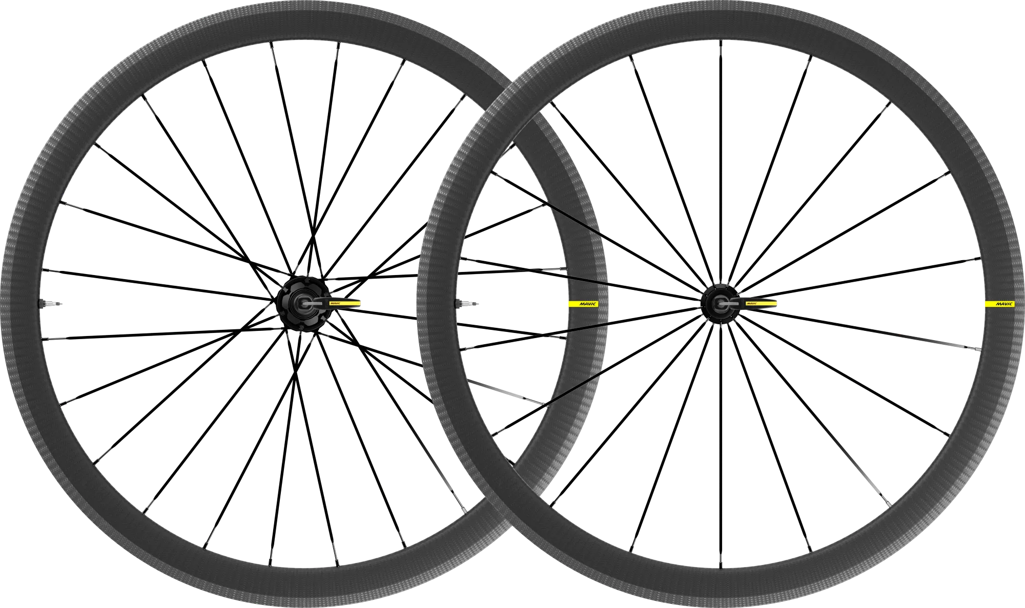 Mavic uses its Infinity hubset with its low friction Instant Drive 360 ratchet freehub and laces the wheels with 18 front, 24 rear aero straight-pull stainless steel spokes.