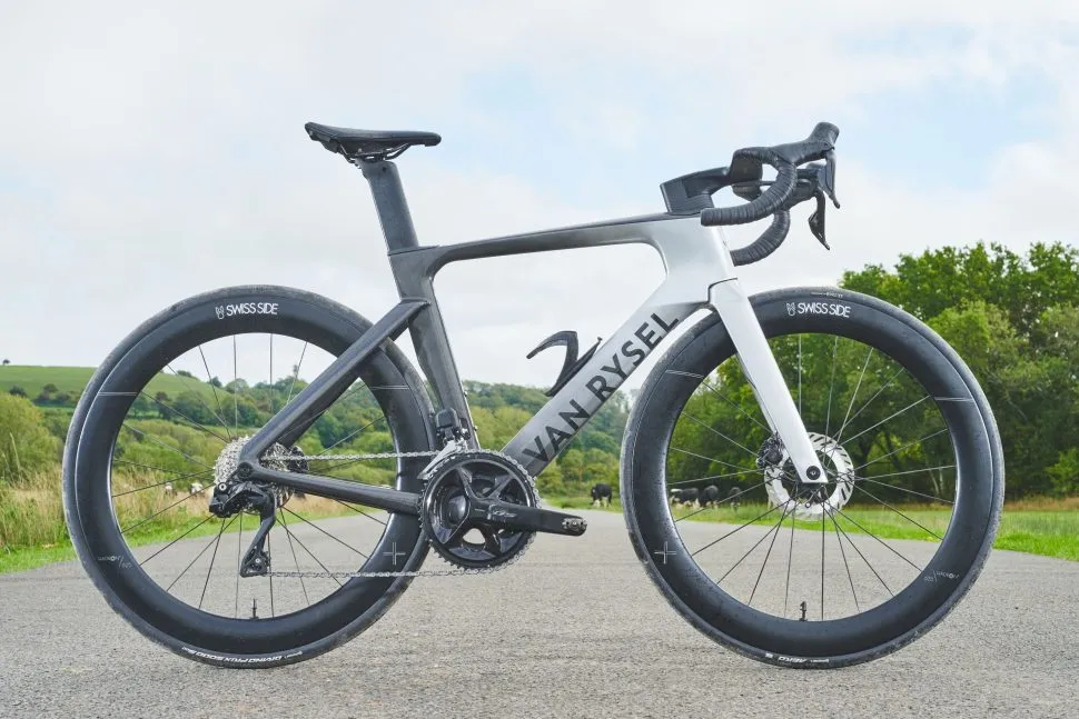 Alongside its lightweight/aero RCR, Decathlon’s Van Rysel sells the all-in aero RCR-F, the preferred ride of its pro team. Independent testing shows that its aero credentials are up there with the best, while Van Rysel says it’s 13.6 watts faster than the RCR thanks to the exaggerated aero profiles, tuned to work with the deep section Swiss Side wheels.