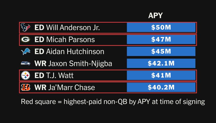 Late last week, the Texans and Will Anderson agreed to a three-year extension worth $150 million. You know what comes next: He’s now the highest-paid non-quarterback in NFL history.