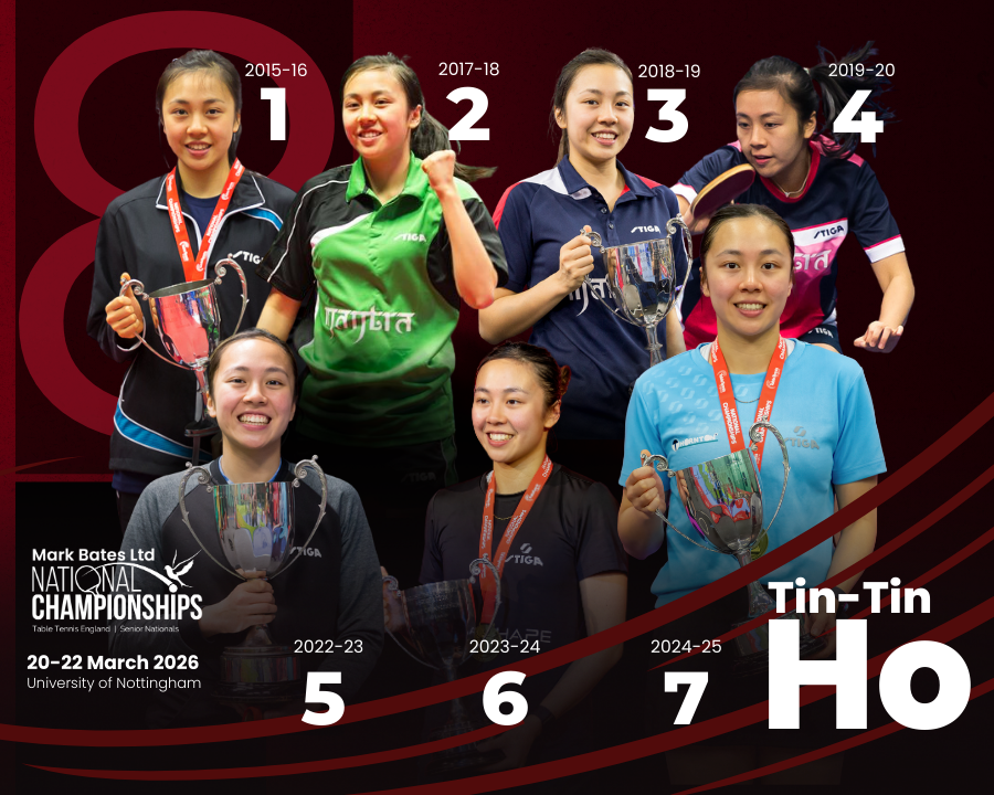 If she succeeds, it will move her clear of England legend and Table Tennis England President Jill Parker MBE and into the outright lead at the top of the all-time list – both are currently on seven.