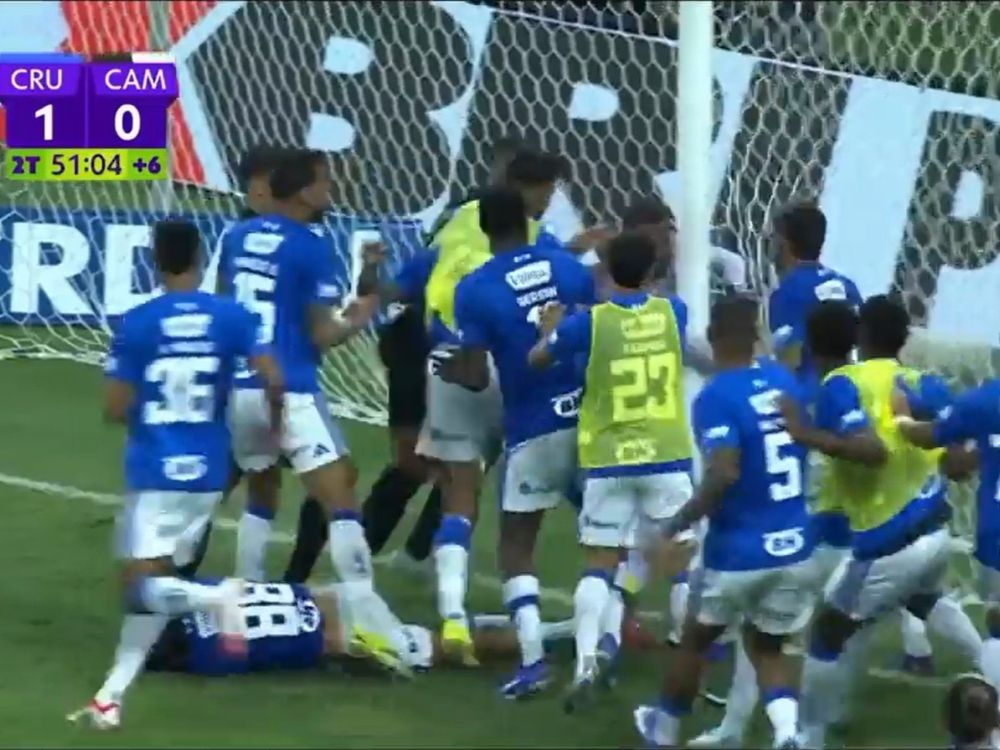 The two clubs, which are based in Belo Horizonte, were competing in the final seconds of stoppage time when tempers flared after a collision involving Atletico goalkeeper Everson and on-rushing Cruziero midfielder Christian, who was seeking the rebound off a long shot.