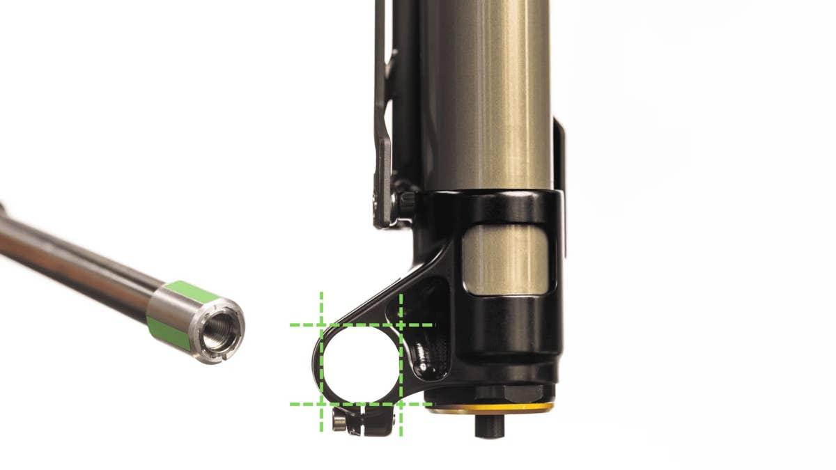 The biggest knock on single-crown inverted forks has always been torsional flex – a vague feeling of the lower stanchions twisting because they aren’t braced with a crown arch. Cane Creek is tackling this with what they call a SquareLoc Axle System
