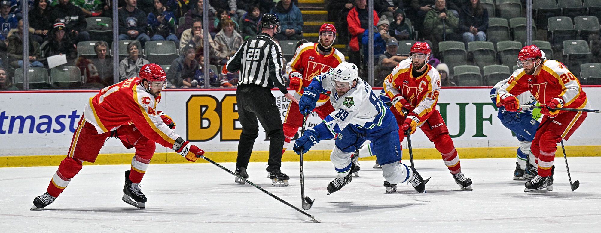 The Abbotsford Canucks completed their weekend sweep with a quick turnaround in a back-to-back matchup against the Calgary Wranglers.