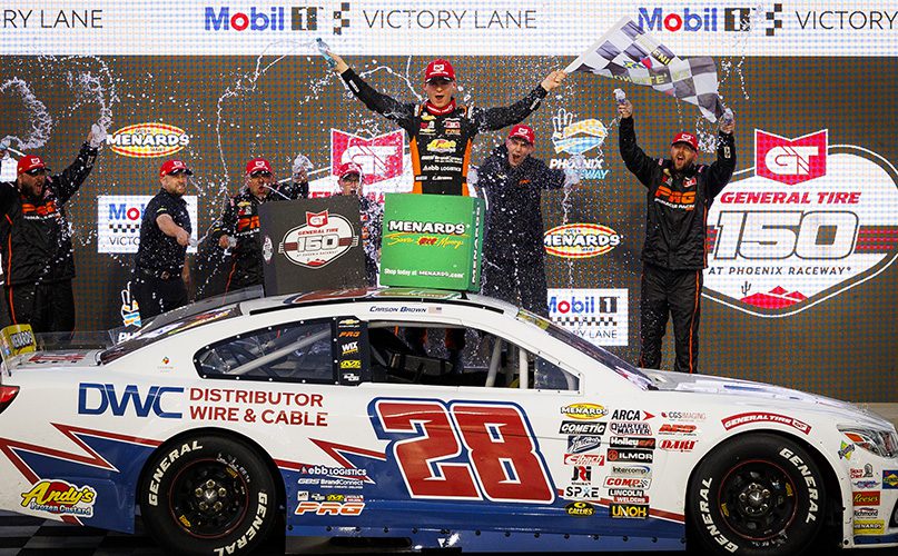 Brown’s experience from that outing was prevalent throughout his second trip to Phoenix on the ARCA Menards Series platform. A time of 27.67 in qualifying gave Brown the pole. He then proceeded to lead most of the General Tire 150 with minimal resistance.