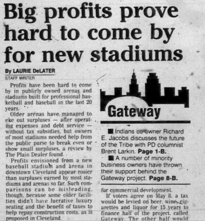 Oh, so a resident in Cleveland should look at the money going to the sports teams as an investment? Investment is defined in Oxford as “the action or process of investing money for profit or material result.” When will the public be getting this profit? Why would a single person celebrate this? If someone is struggling with a low-paying job and several kids, who expects this person to be happy when his sports team wants $300M for a new roof?