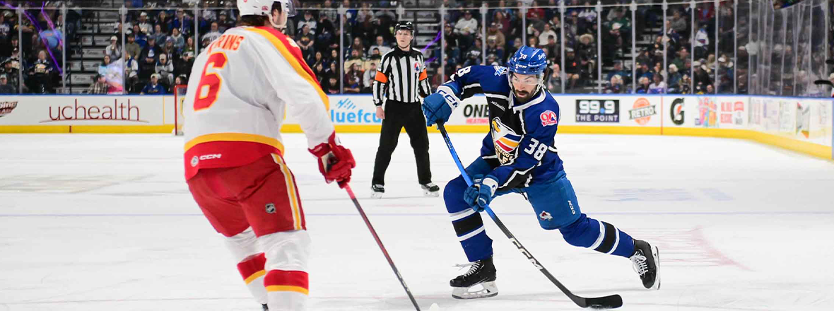 LOVELAND, CO. – Colorado forward Gavin Brindley notched a goal and two assists, while fellow forward T.J. Hughes collected a goal and a helper, but it would not be enough, as the Calgary Wranglers rallied from a 4-0 deficit to defeat the Eagles 7-5 on Saturday. Wranglers forward Martin Frk netted a pair of goals, while goaltender Arsenii Sergeev stopped 44 of the 49 shots he faced to pick up the win in net. Isak Posch suffered the loss, allowing six goals on 27 shots.