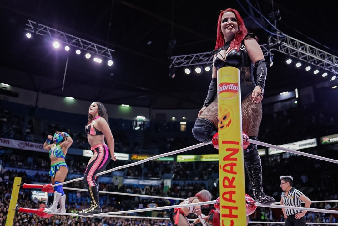 While on glamour Tuesday in Guadalajara, we had a six-woman tag match between Chile’s newest export Akari, teaming up with Lluvia and Kira, taking on Zeuxis, Nexy & Miss Guerrera.