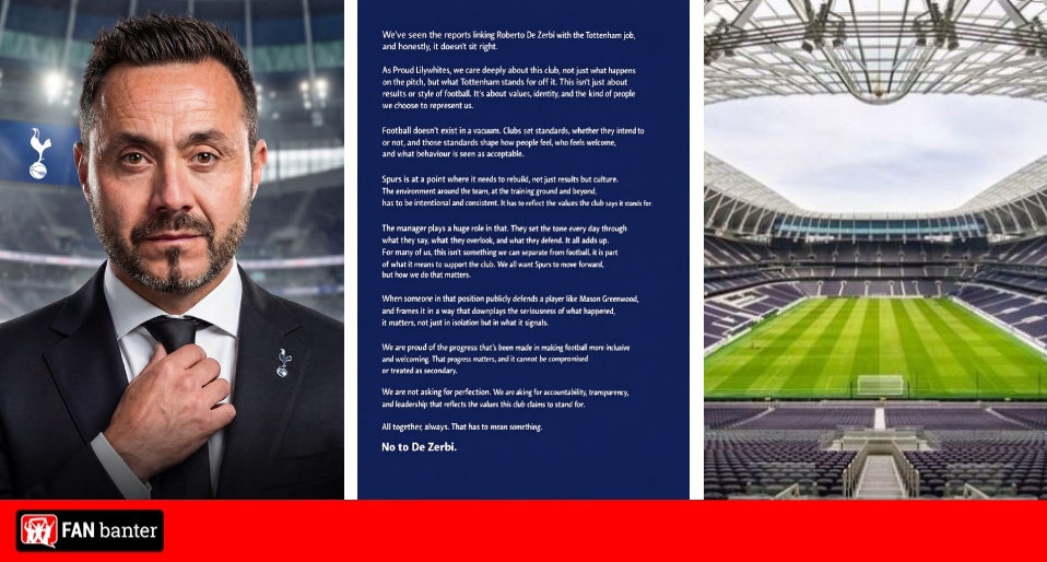 “For many in our community, this is difficult to reconcile with the club’s stated commitments to respect, safety and inclusion. This is not an appointment Tottenham Hotspur should make. It introduces unnecessary cultural risk without a clear, proven track record to justify it.”