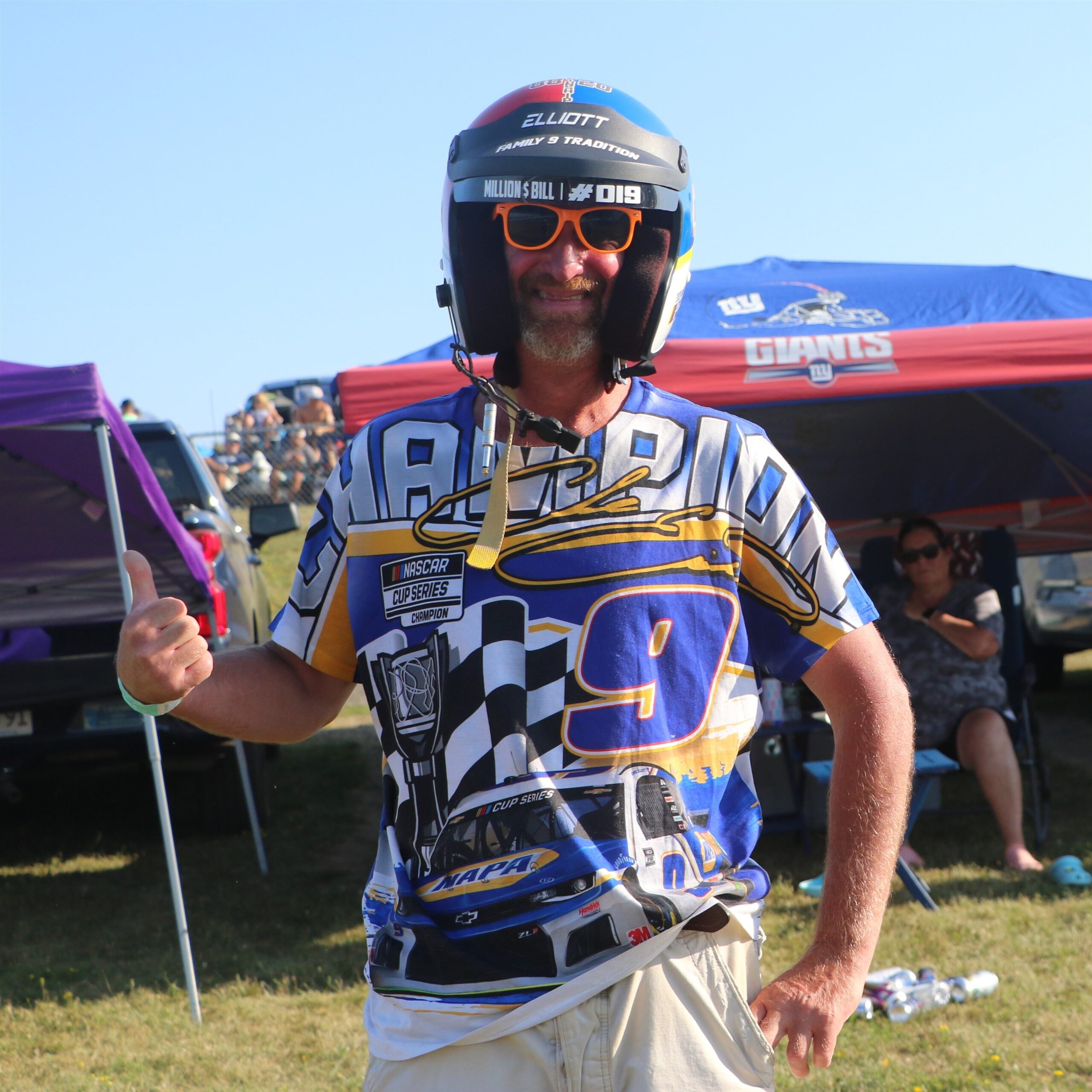 Chase Elliott race fan Kenny Hunt gives a big thumbs up to the racing action at Watkins Glen International – Motorsport America Photo