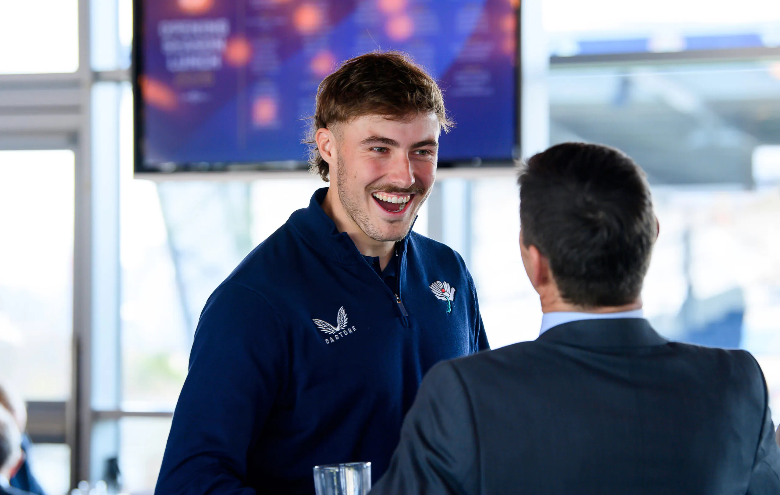 Picture by Allan McKenzie/SWpix.com – 25/03/2026 – Cricket – Yorkshire County Cricket Club Opening Season Lunch – Headingley Cricket Ground, Leeds, England – FInlay Bean with members and guests.