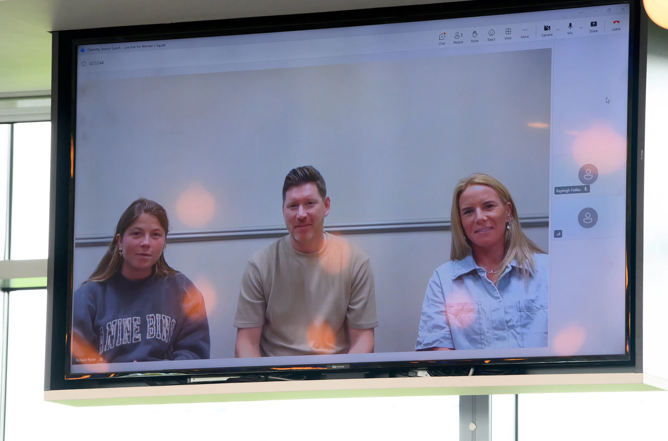Picture by Allan McKenzie/SWpix.com – 25/03/2026 – Cricket – Yorkshire County Cricket Club Opening Season Lunch – Headingley Cricket Ground, Leeds, England – Yorkshire Women’s players Sterre Kalis and Lauren Winfield-Hill with coach Rich Pyrah on screen from South Africa.