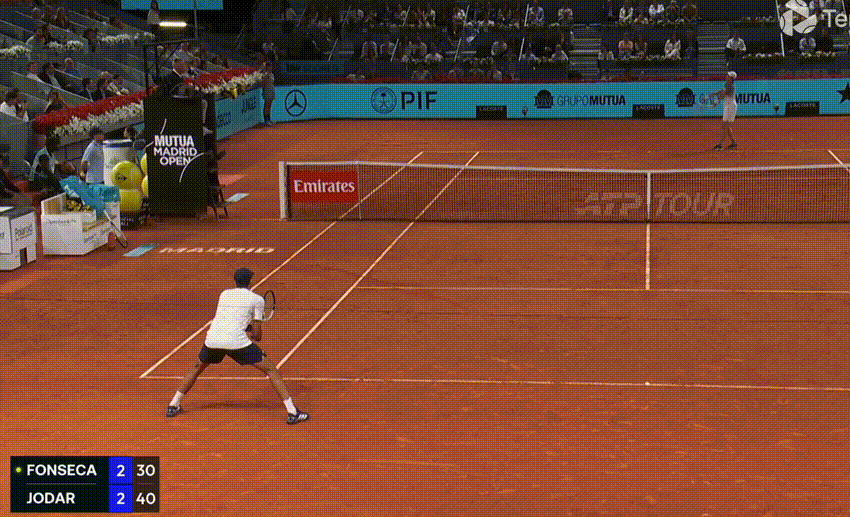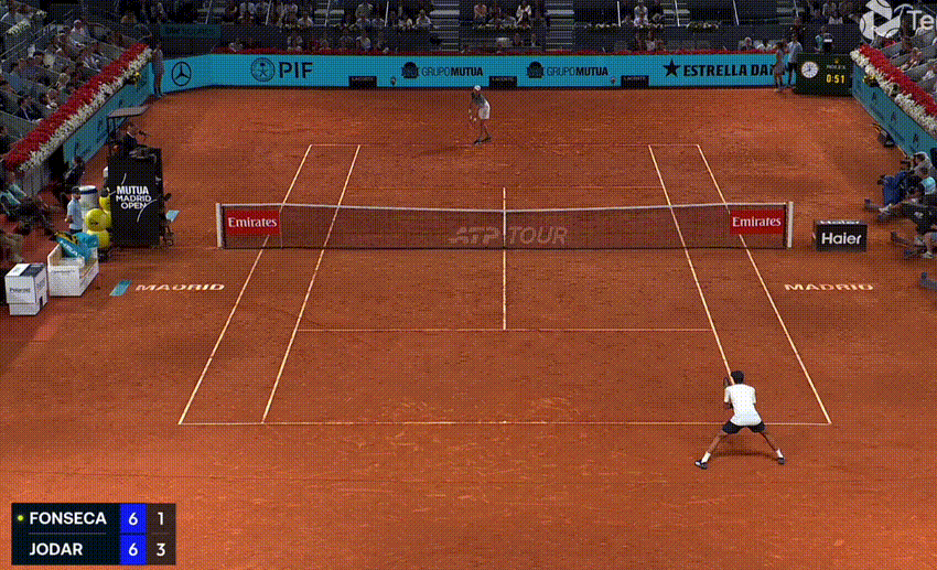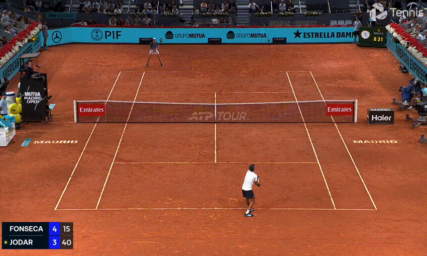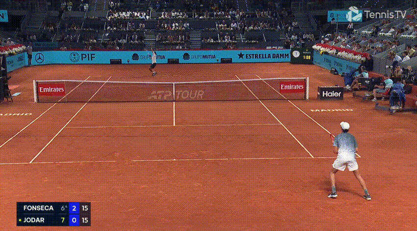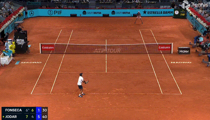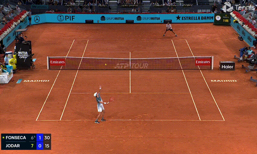 On the backhand (in general, and in this match) you get the sense that Fonseca is happier to trade, whereas Jodar wants to hurt you close in, and rush you from ball one. The Spaniard stepped in on his front foot more aggressively, and from more attacking court positions, and it was a pivotal shot on numerous occasions: