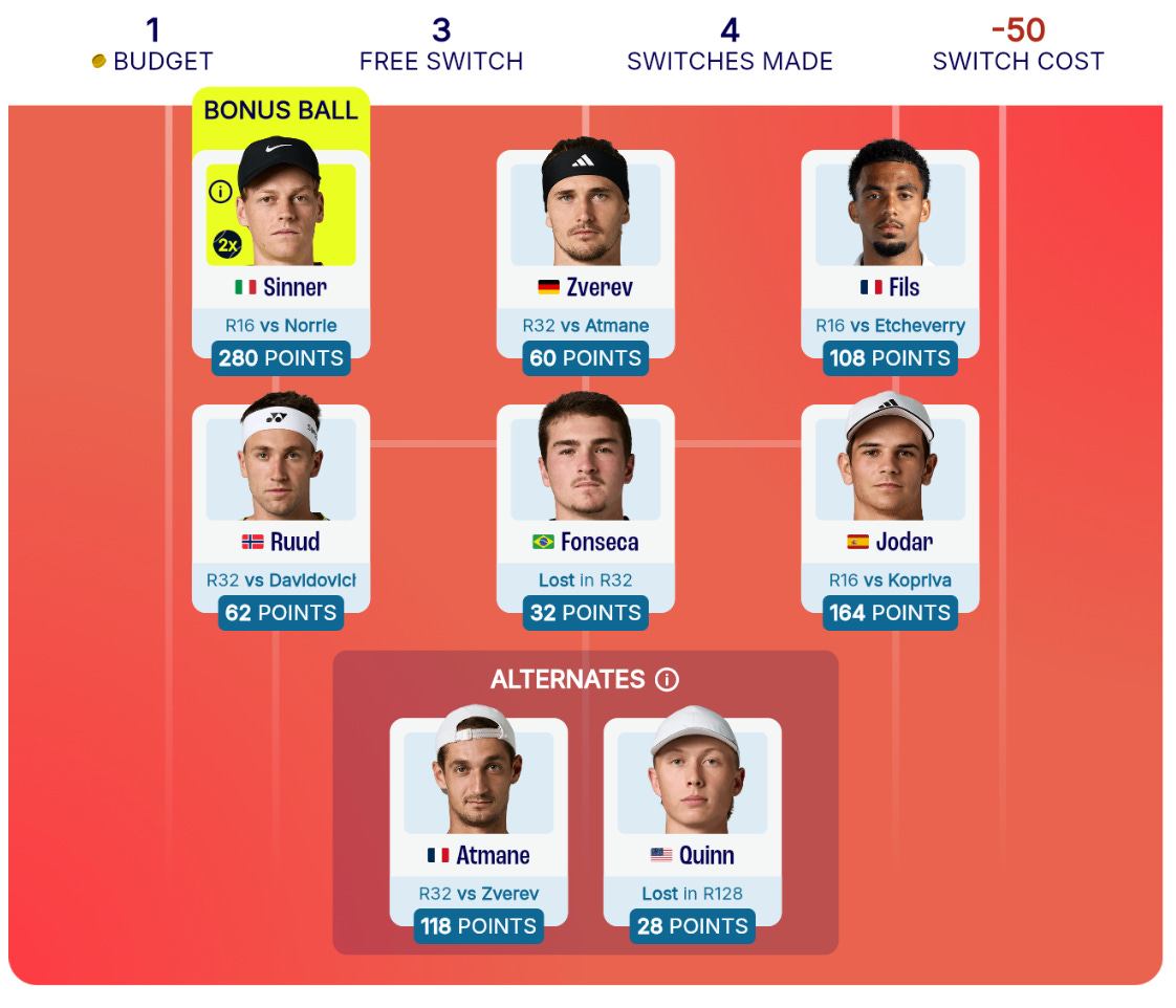 But overall the variety often looked more like a lack of intent from Fonseca, and his identity as The Forehand Kid looked shaken (and perhaps, stolen?).