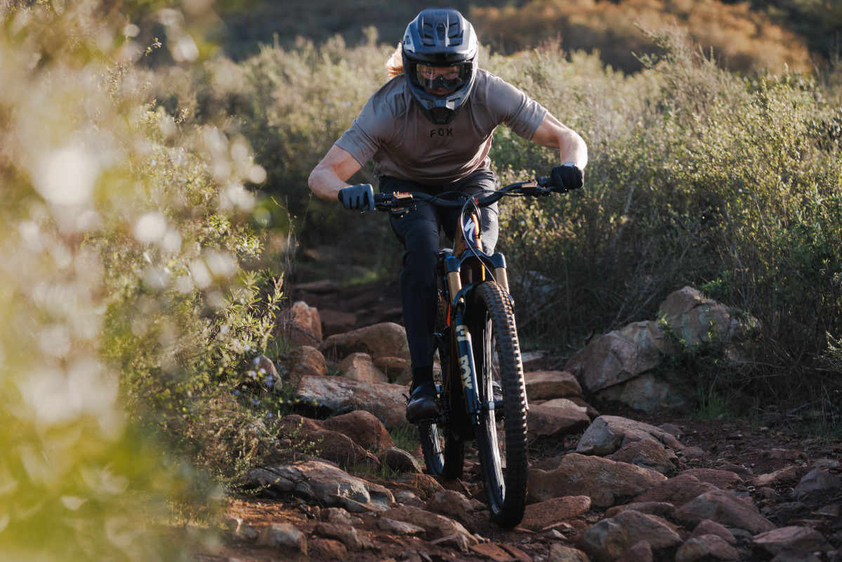 One of the coolest technical additions is the FLOAT Glidecore air spring that comes from the smaller forks in the Fox lineup (also found on the new 40). If you’ve ever felt your fork get “sticky” when you’re leaning hard into a corner or heavy on the brakes, you’re feeling friction caused by the fork air-spring slightly flexing and binding under the load.