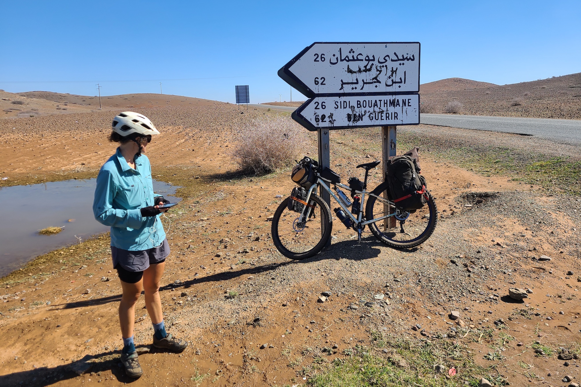 She unbuckled my rear panniers, placed the garment inside, and said, “See? Room. You have it.” Smiling, she added, “Inshallah.”