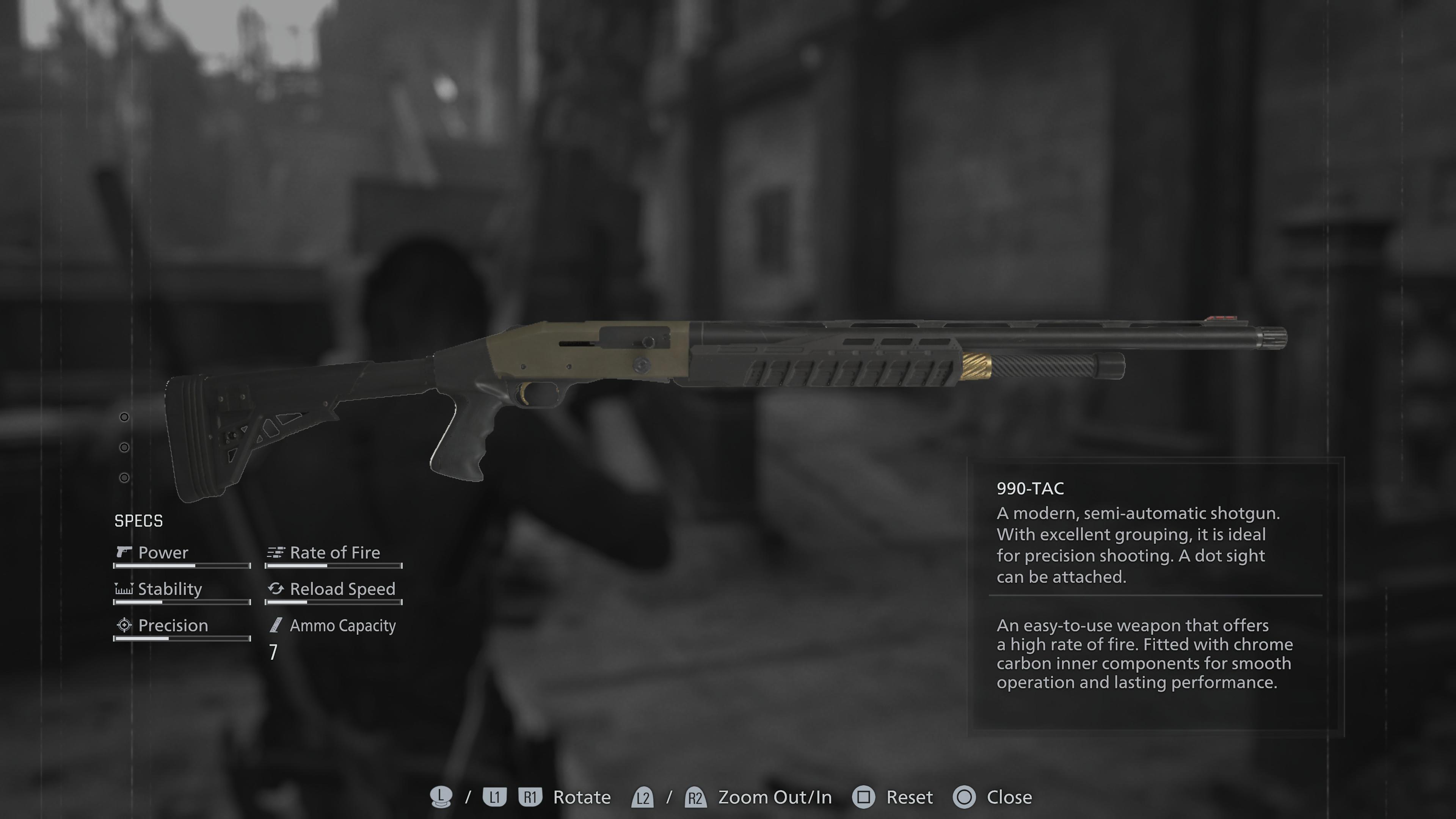 A modern, semi-automatic shotgun. With excellent grouping, it is ideal for precision shooting. A dot sight can be attached. An easy-to-use weapon that offers a high rate of fire. Fitted with chrome carbon inner components for smooth operation and lasting performance. Its seven-shell capacity and high rate of fire make it forgiving under pressure, allowing you to control crowds without constantly reloading.