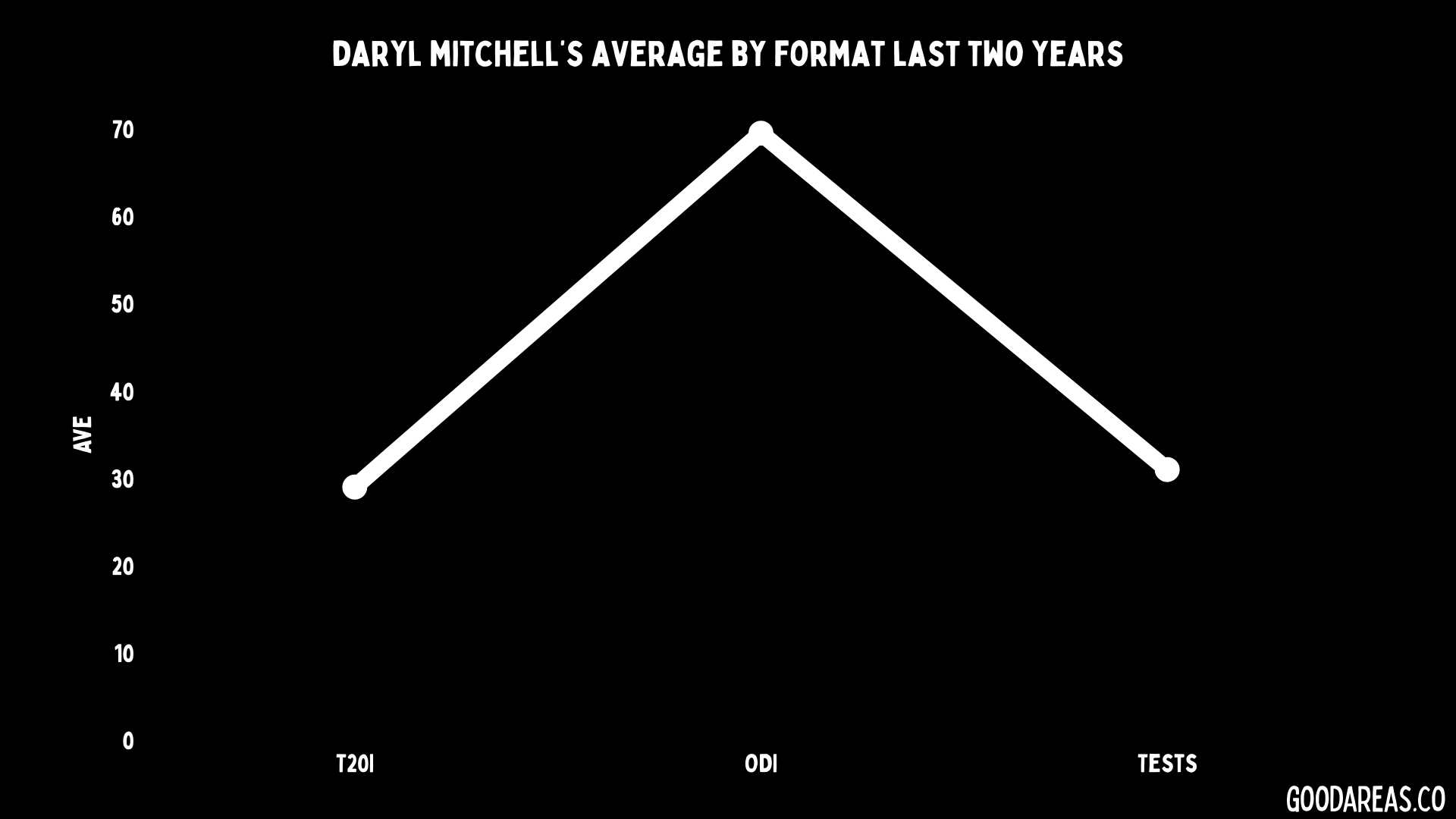 Modern cricket is basically impossible to keep in your head. A month back, everyone is telling me Daryl Mitchell is the greatest all-format player in the world right now. And he is certainly a superstar in ODIs. His T20 cricket has been ok, but he’s often good when needed. But in Tests, he’s averaging 31.