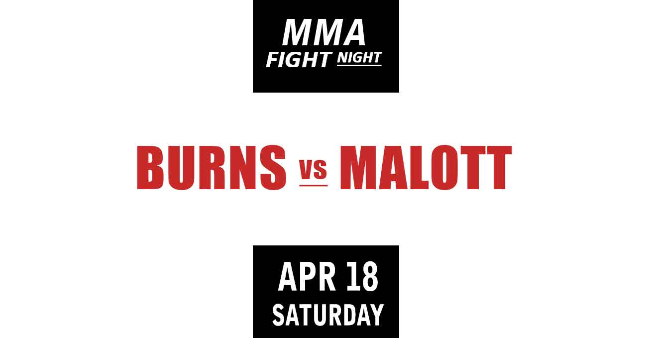 Malott vs Burns is scheduled to take place Saturday, April 18th, at the Canada Life Centre in Winnipeg (Canada), in a 5-round welterweight (170 lbs, 77 kg) bout; it is the main event of the UFC Fight Night 273 (also known as Ufc Ottawa or Ufc Winnipeg). Watch the video and rate this fight!
