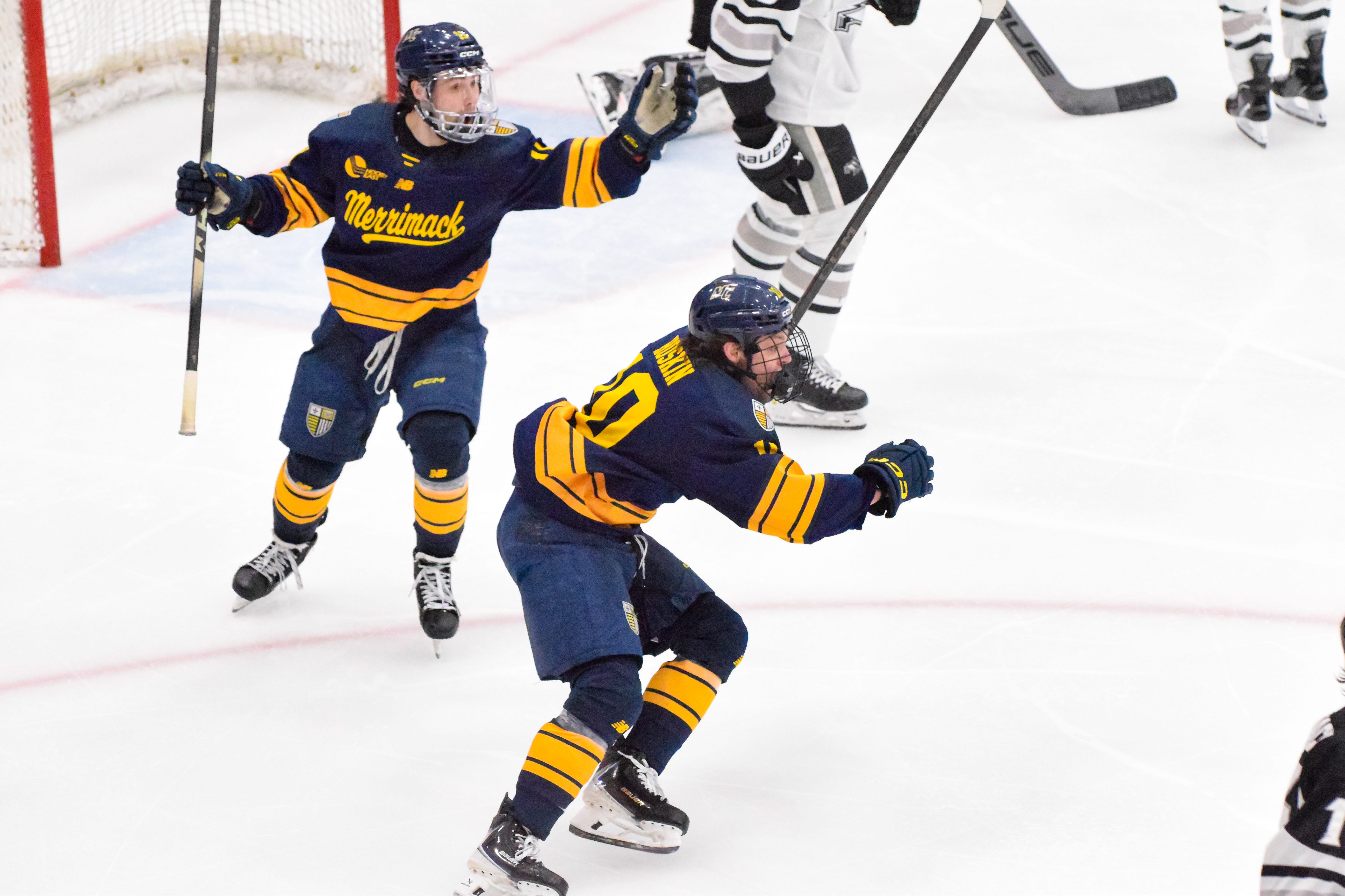 Merrimack seized the lead early in the third when Nolan Flamand converted on the power play just 1:00 into the period, giving the Warriors a 2-1 advantage.