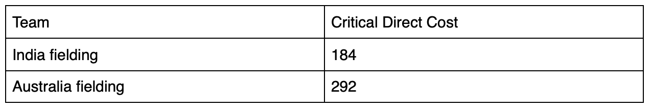 So when it came to the critical direct cost of dropped catches/stumpings, Indian fielders gave away 184 runs whereas Australia gave away 292. That 108 run difference was enough to tilt the scales towards India.