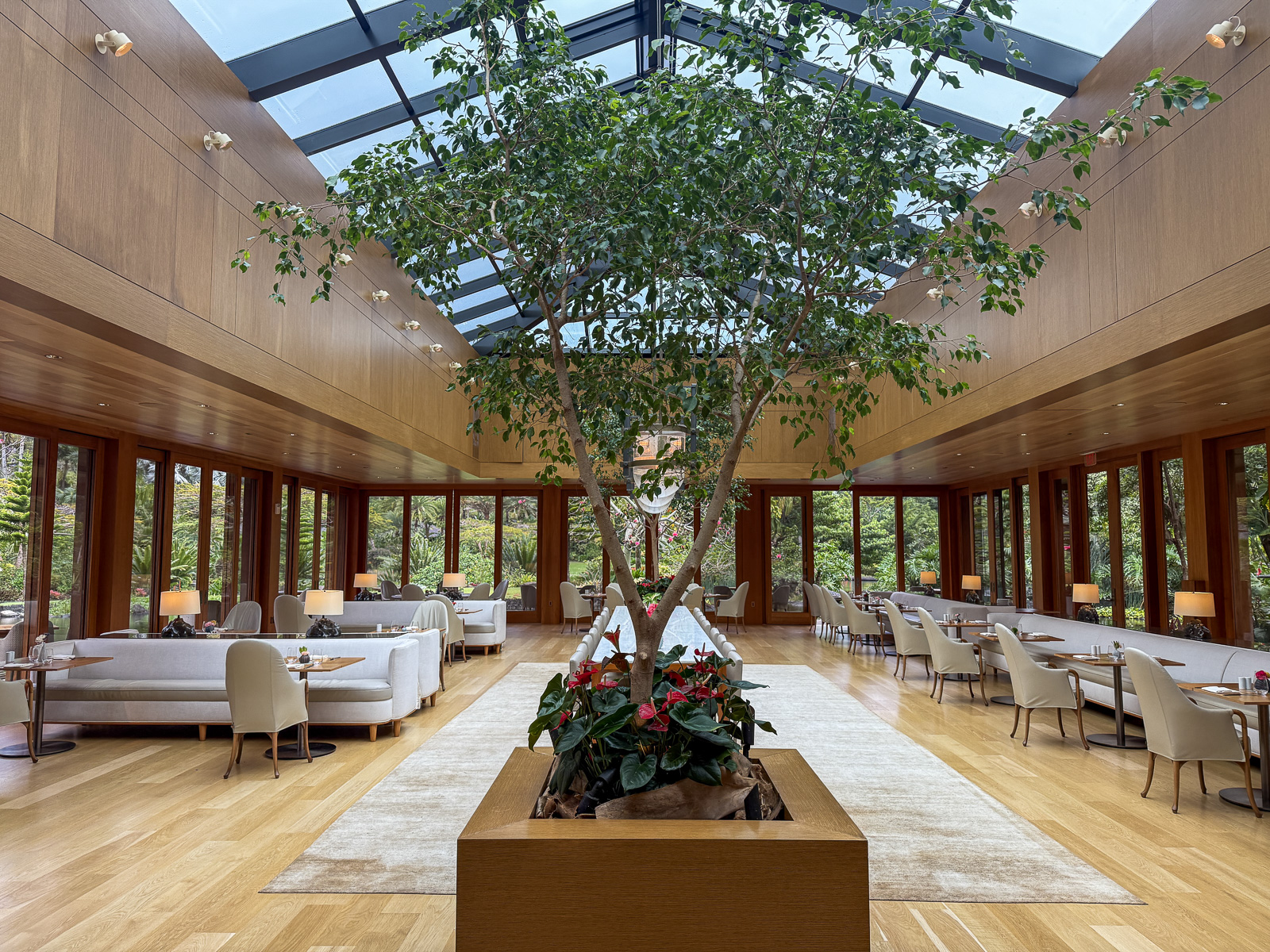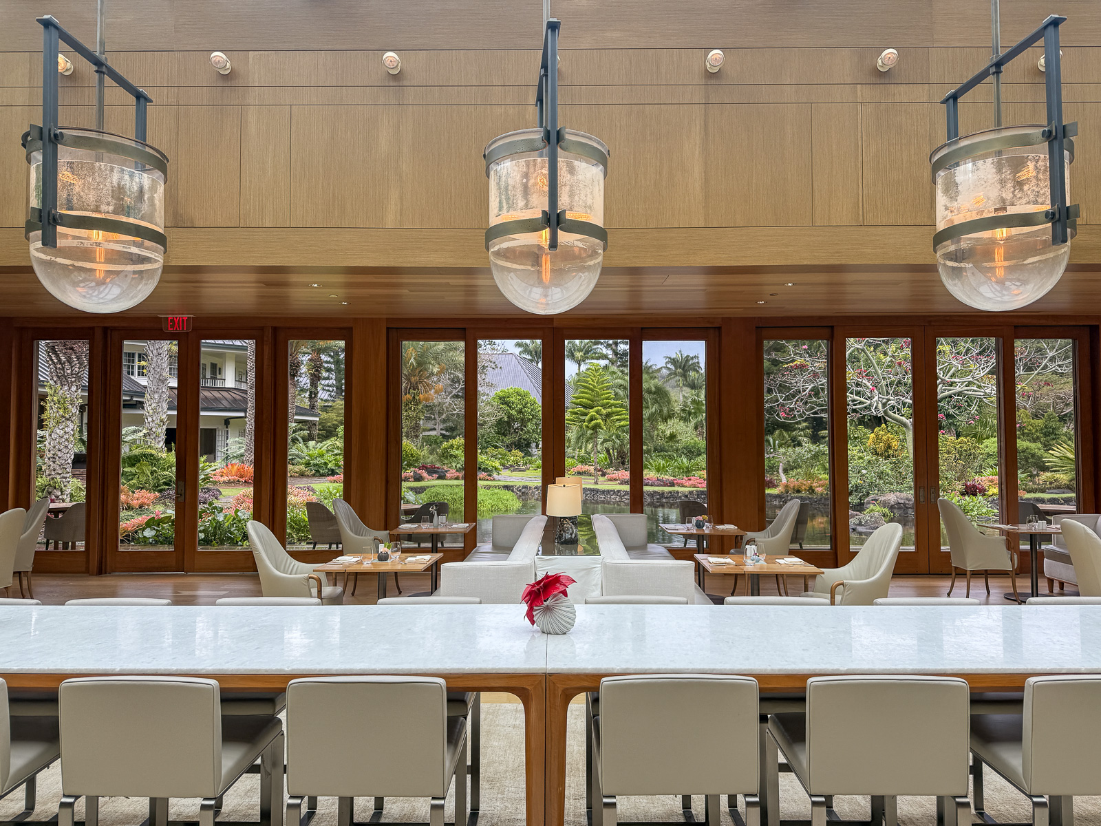 There’s no ocean view or beach in sight. Instead, you’re surrounded by pine trees, gardens, and a lush landscape that feels closer to a quiet mountain retreat than a tropical resort.