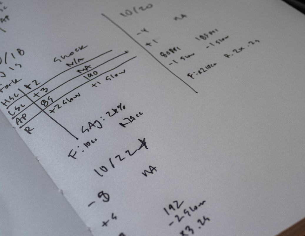 You should always write down and document the pressures you have in your fork and shock to help with further tuning.