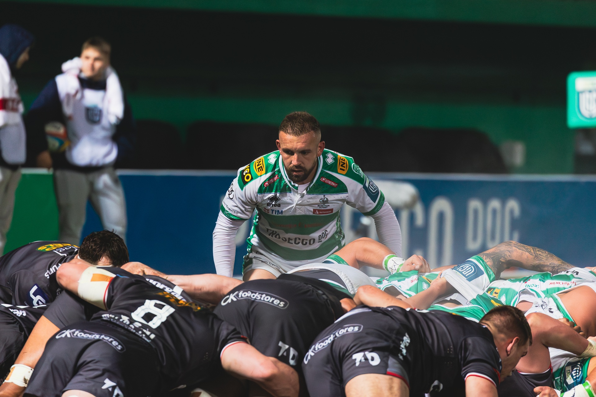Nel pack biancoverde, la prima linea sarà la seguente: Thomas Gallo è il pilone sinistro, a tallonare torna Siua Maile, mentre come pilone destro fiducia a Giosué Zilocchi. In sala macchine spazio ancora alla coppia formata da Giulio Marini ed Eli Snyman. In terza linea il trio è formato da Riccardo Favretto insieme al flanker Alessandro Izekor. A numero 8 torna dal primo minuto il capitano Michele Lamaro.