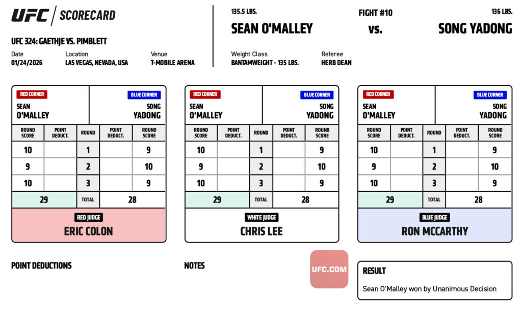 Sean O’Malley finally managed to snap his two-fight losing skid this past weekend by cruising to a unanimous decision win against Song Yadong at the UFC 324 co-main event.
