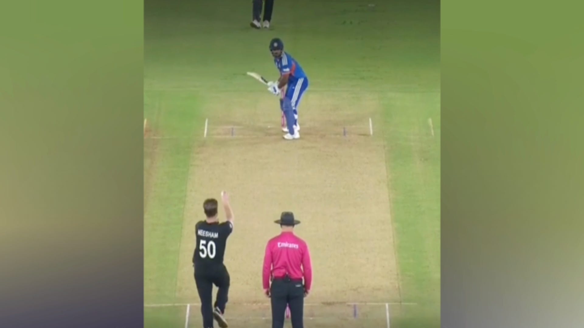 When Jimmy Neesham, the surprise best bowler for the Kiwis, was coming in to Sanju Samson, the Indian had moved across his stumps. It’s one of his superpowers, the ability to face each ball from a different place on the crease, and bowlers hate it.